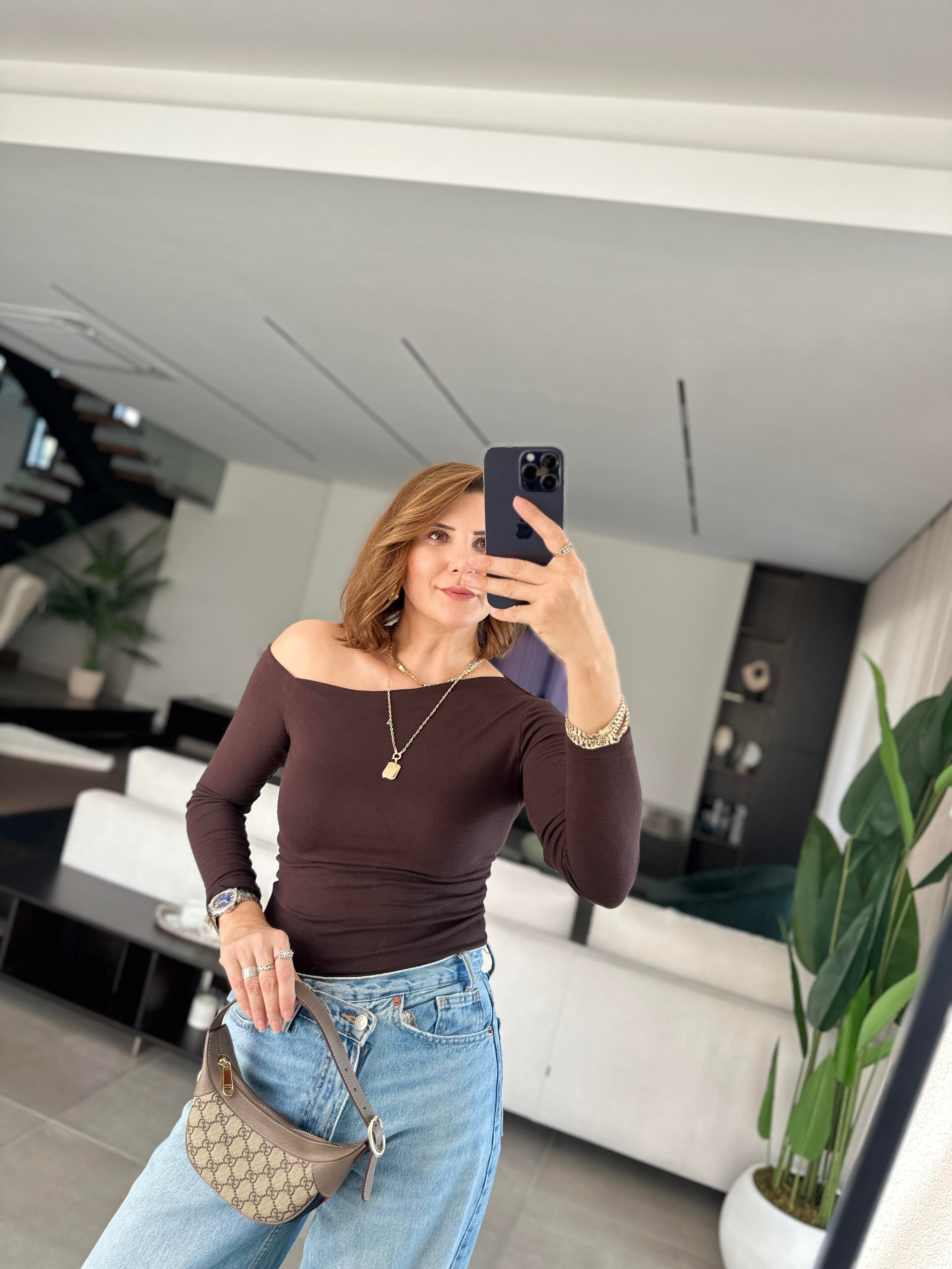 Acı Kahve Tek Omuz Açık Bluz (k132ak)
