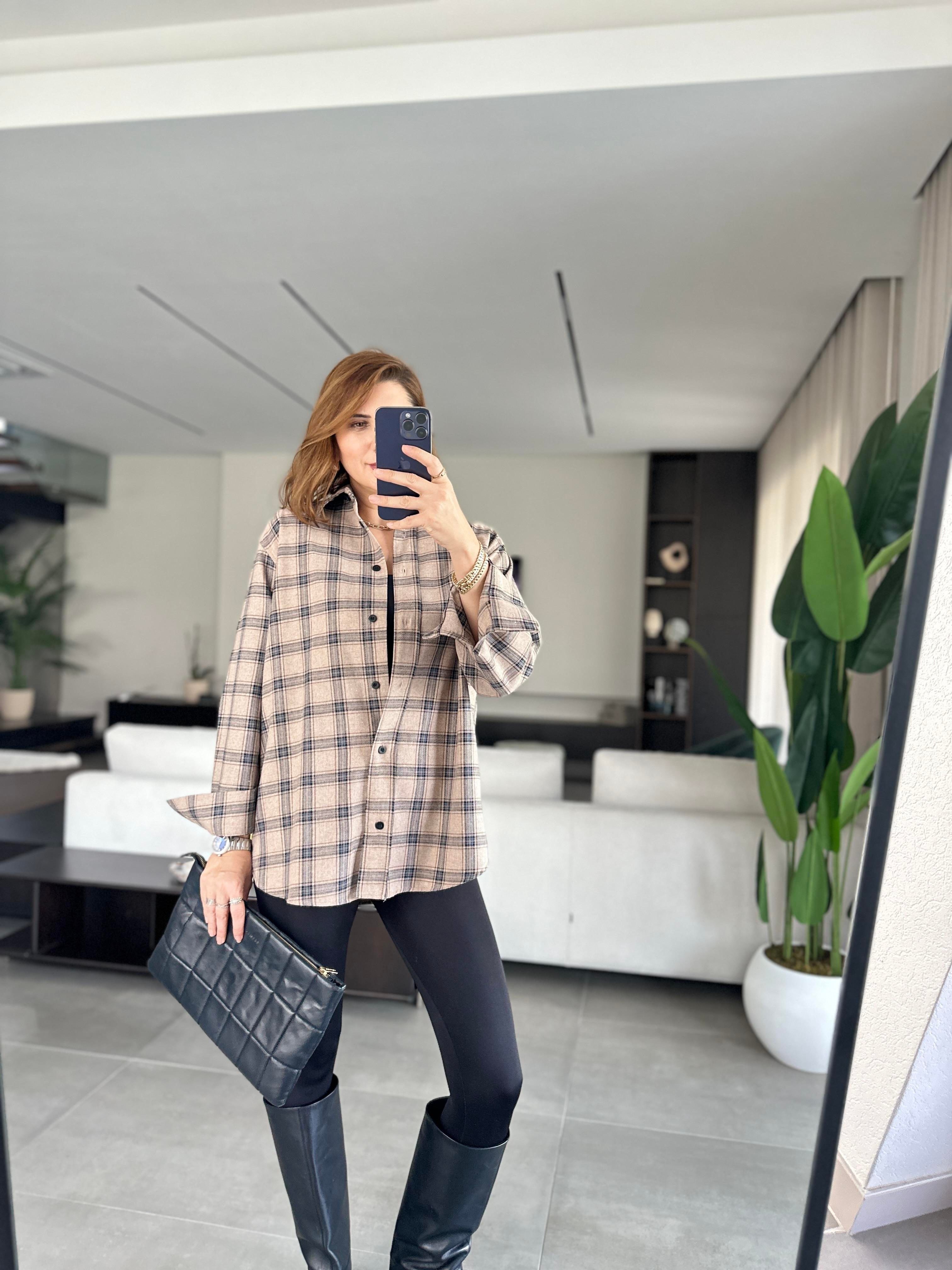 Bej Ekoseli Gömlek