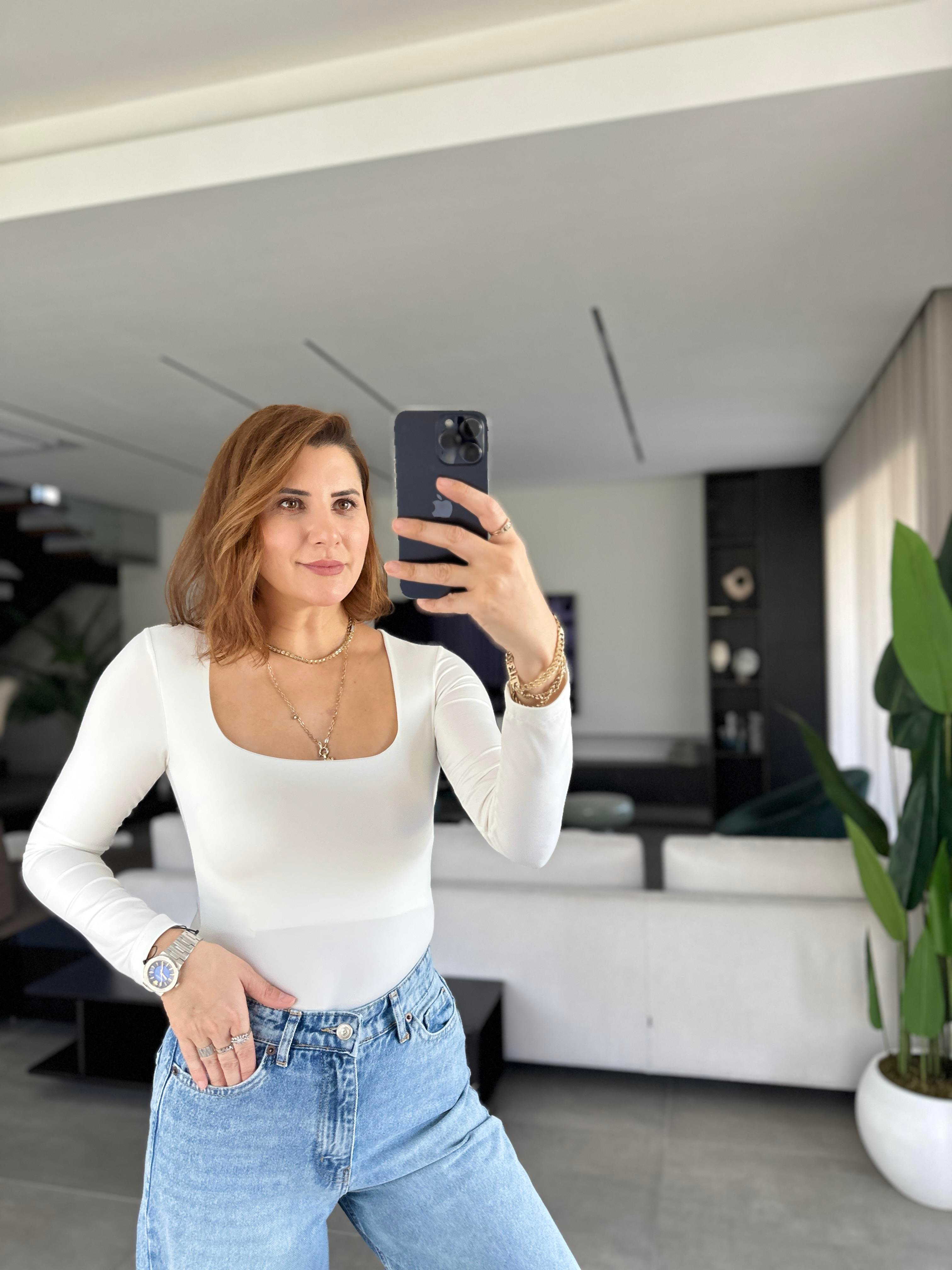 Beyaz Kare Yaka Çıtçıtlı Badi (17004byz)