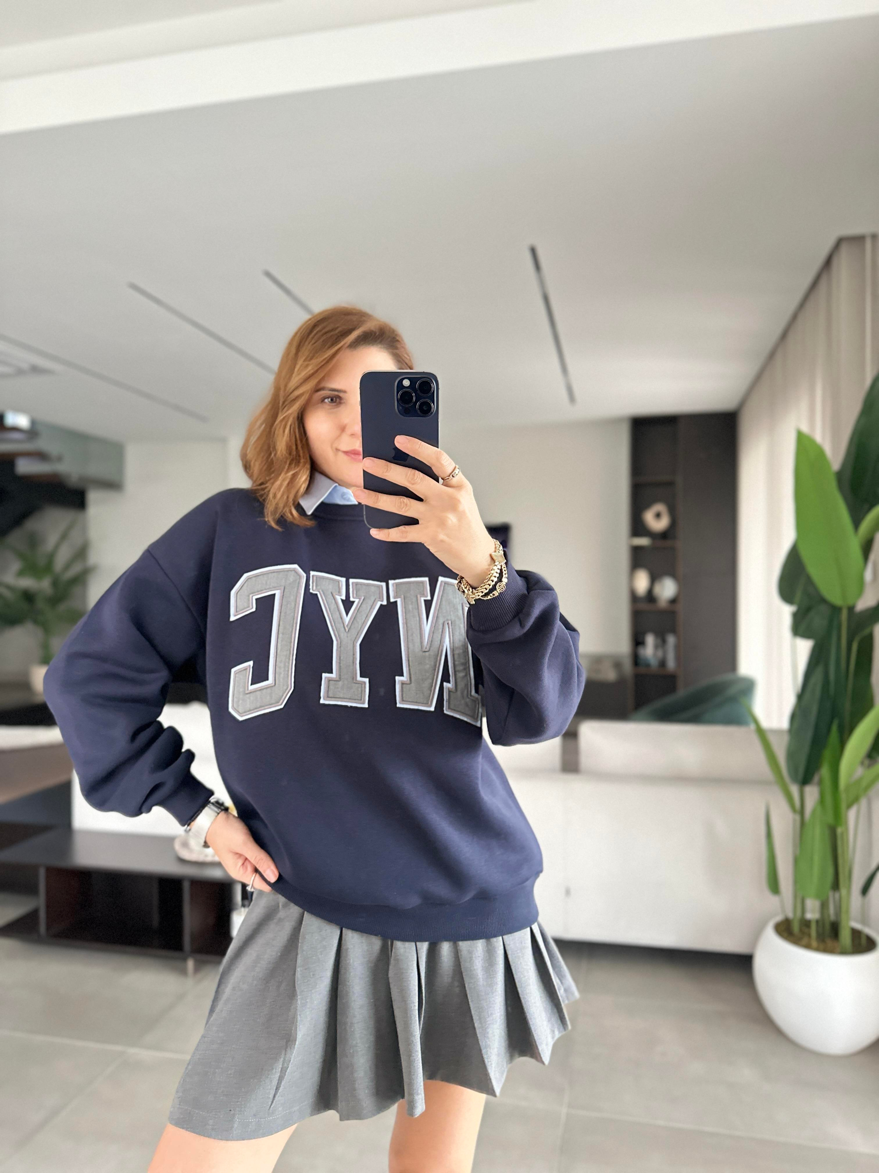 Gömlek Yaka Nakış İşlemeli Üç İplik Sweat