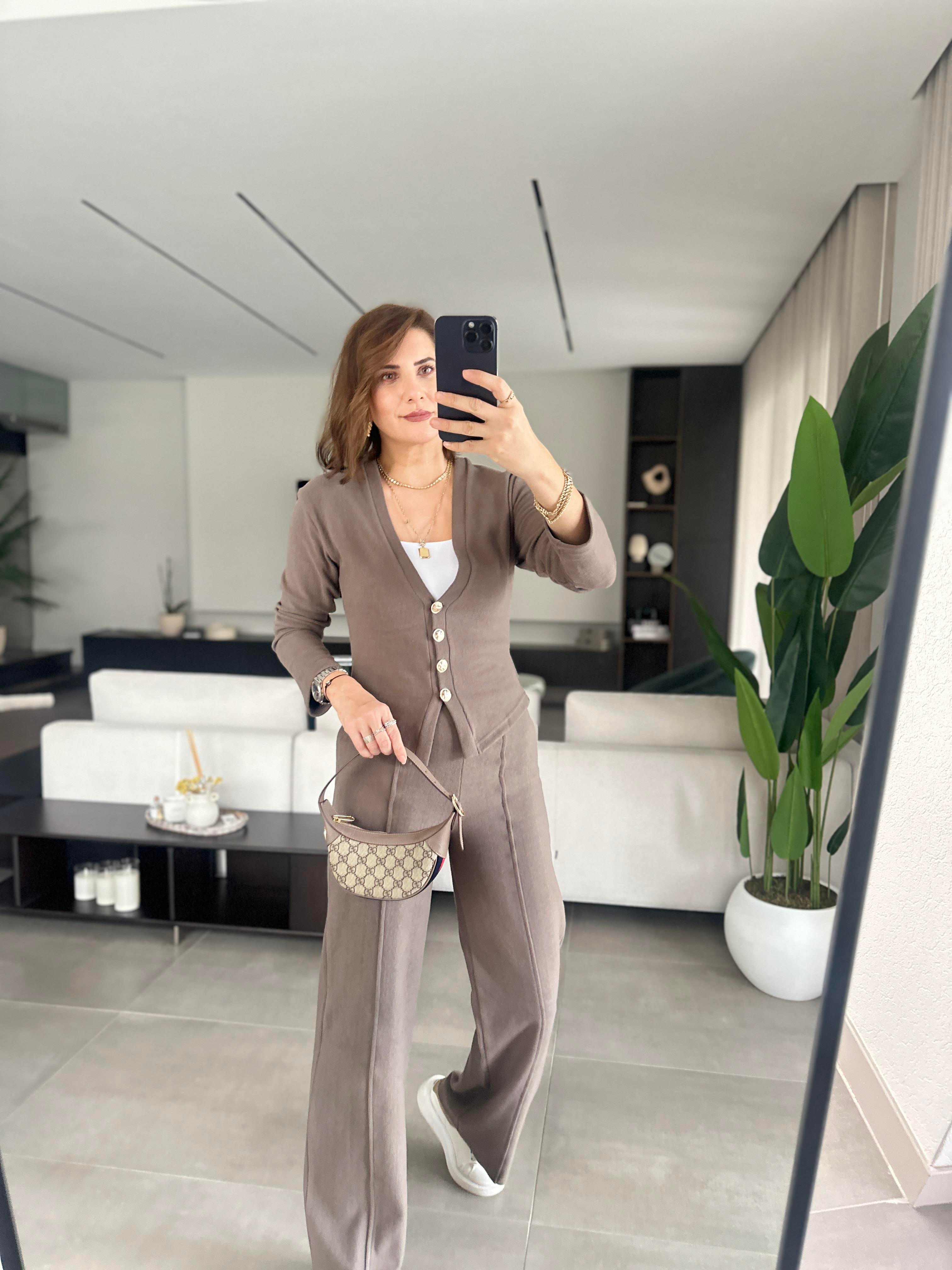 Kahverengi Önü Düğmeli Ceket Takım (k140k)