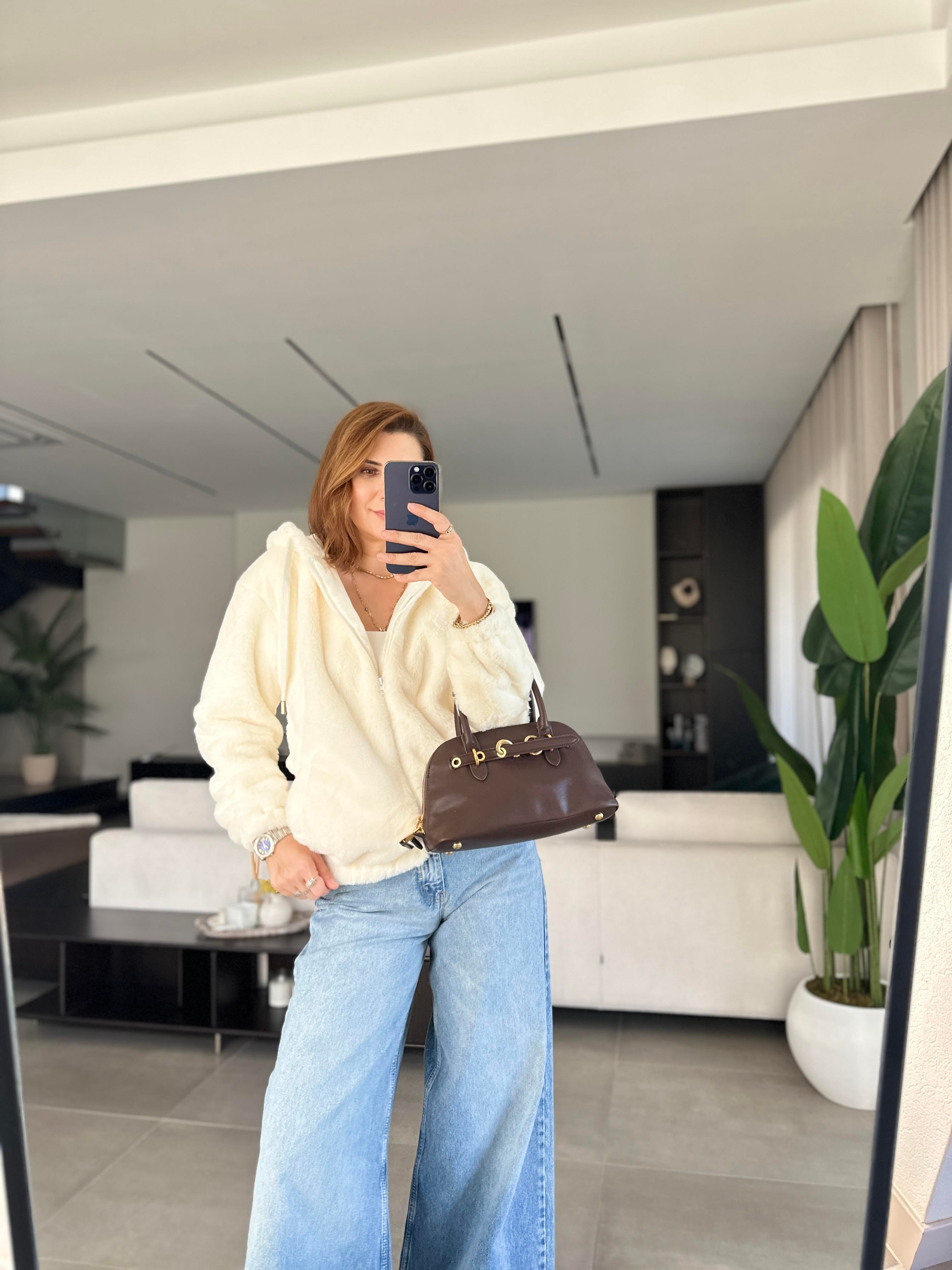 Kapşonlu Fermuarlı Tavşan Ceket (26013)