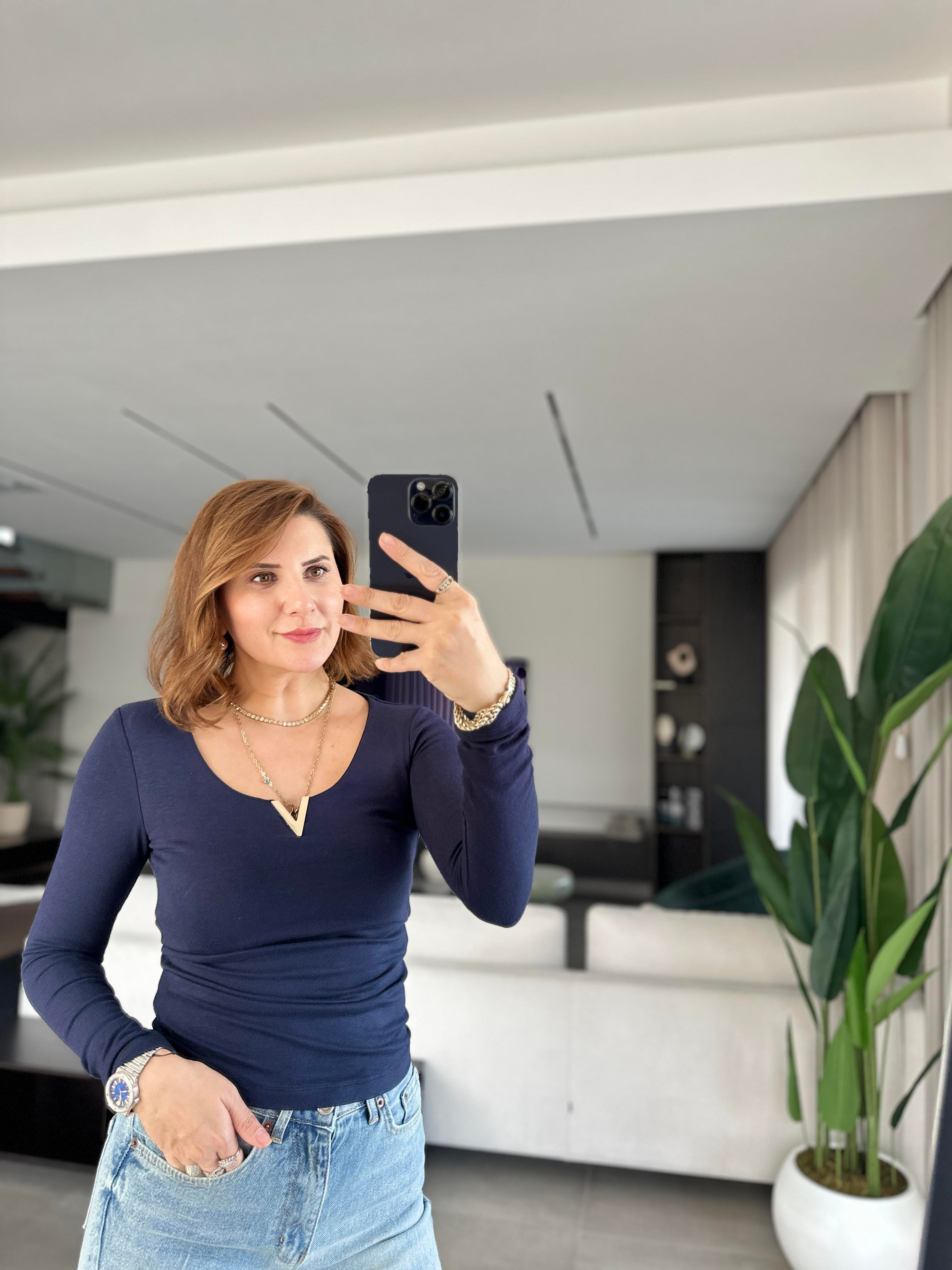 Lacivert Mass Uzun Kol V Demirli Bluz
