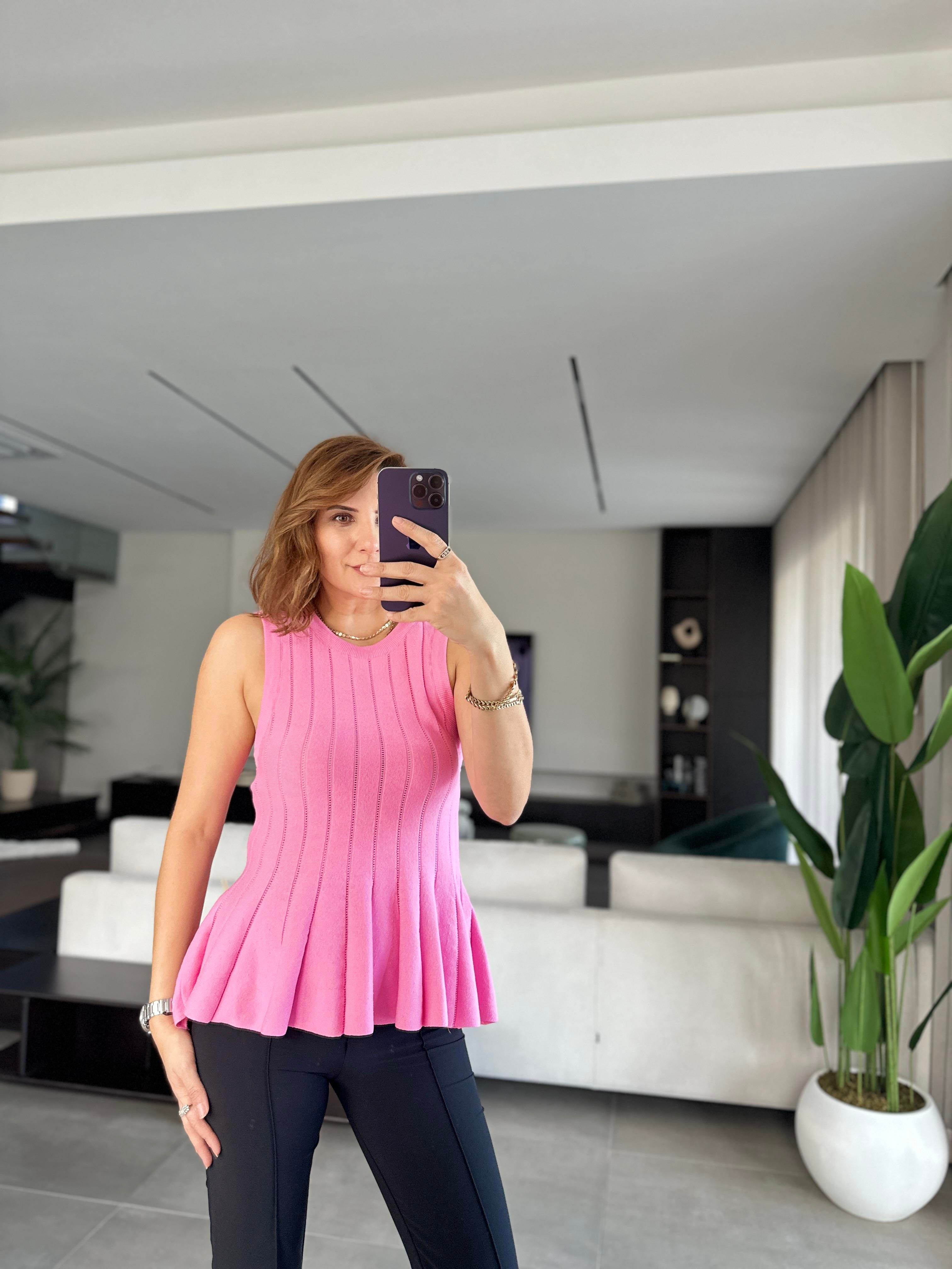 Pembe Belden Oturtmalı Volanlı Bluz (251001p)