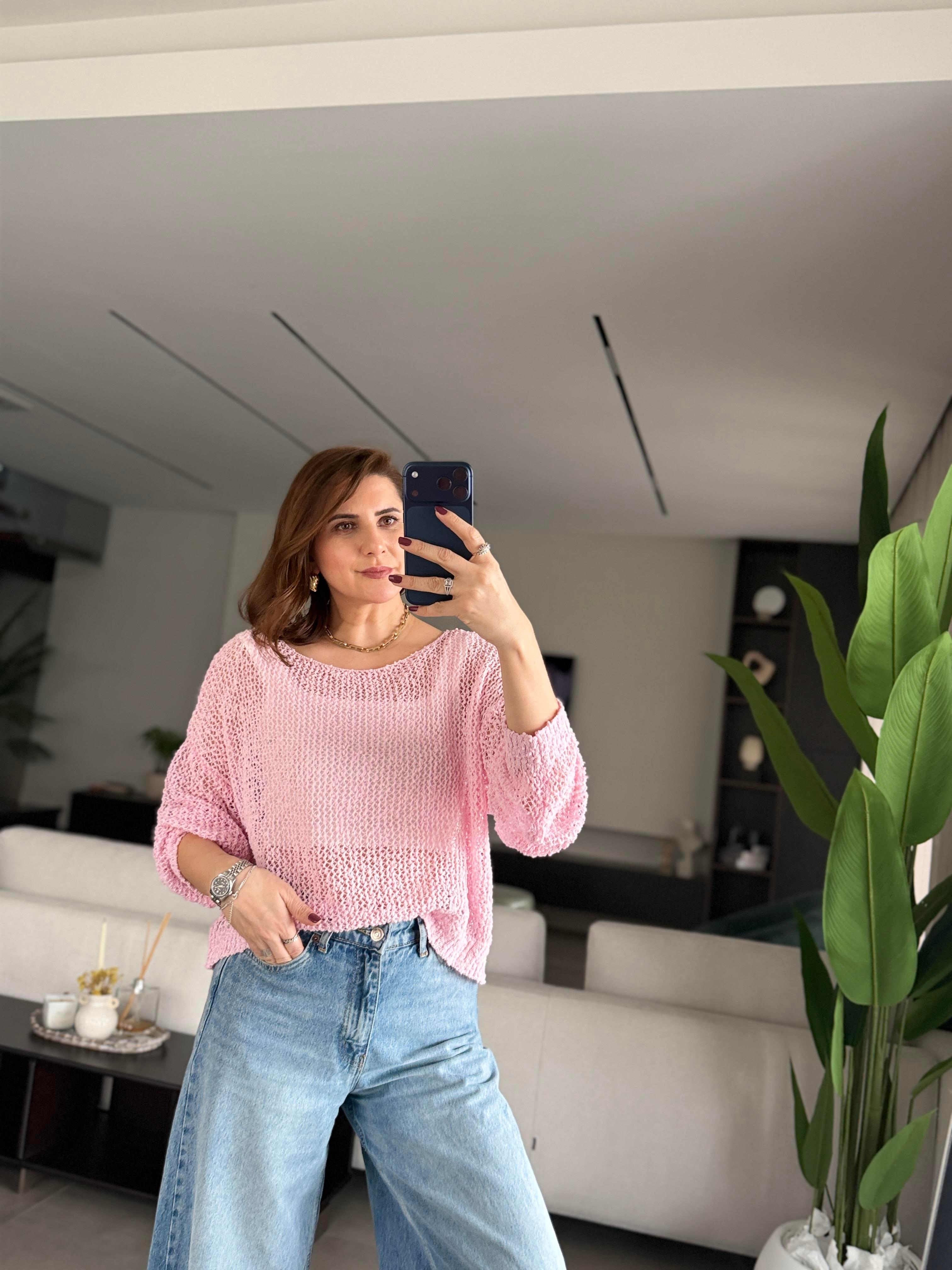 Pembe File Bluz