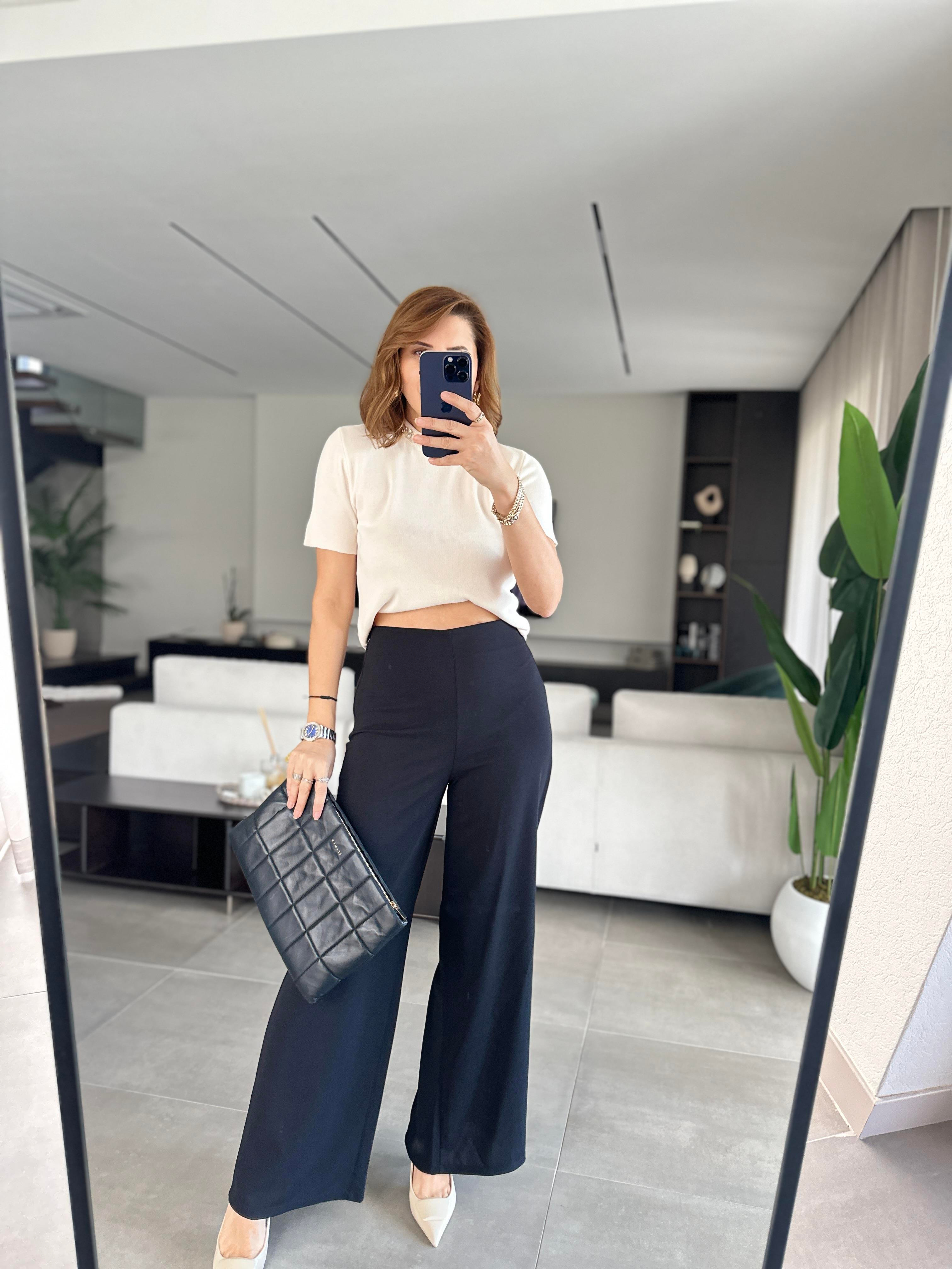 Siyah Fermuarlı Krep Pantolon