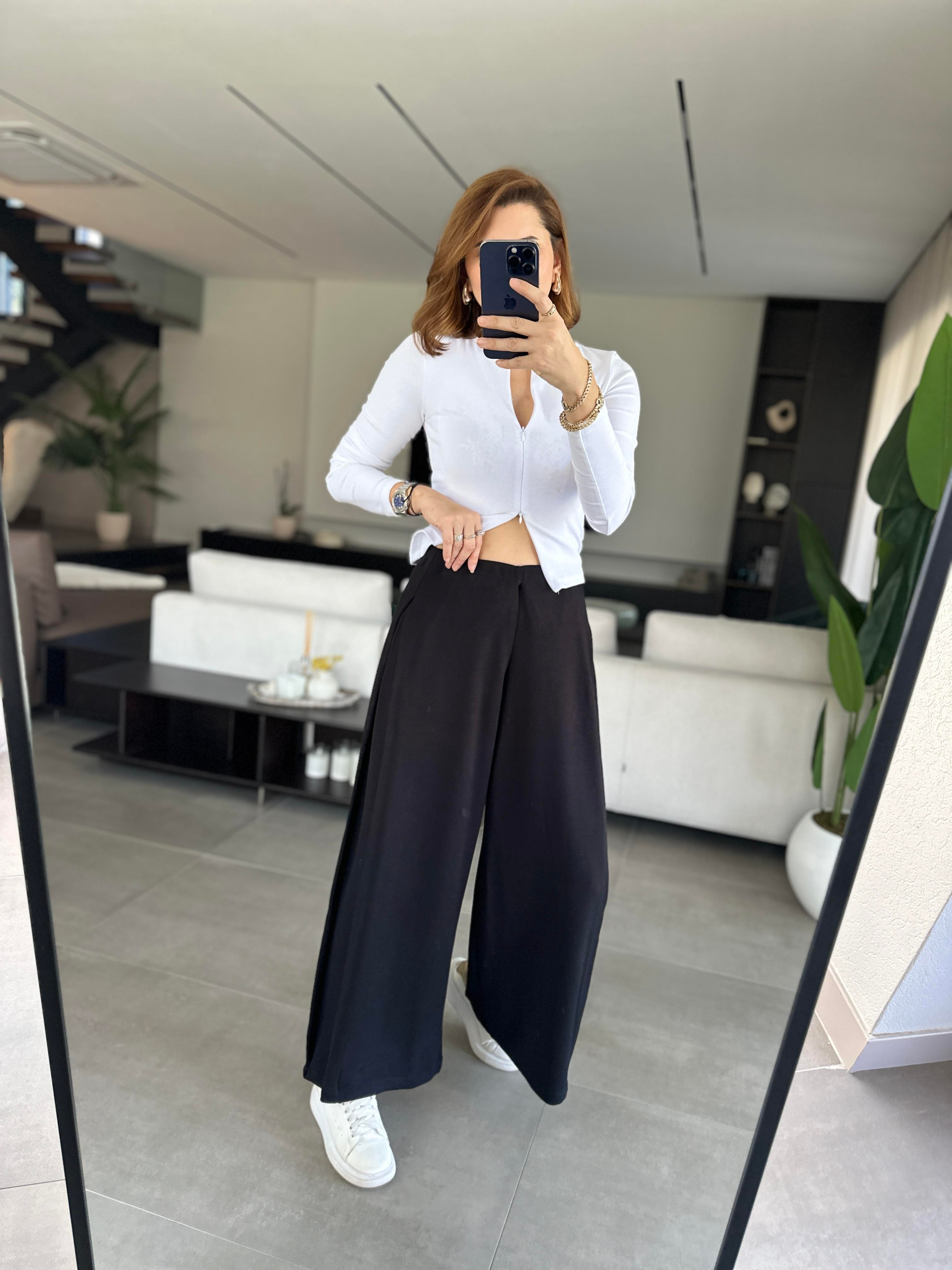 Siyah Yan Pileli Palazzo Pantolon (k139syh)