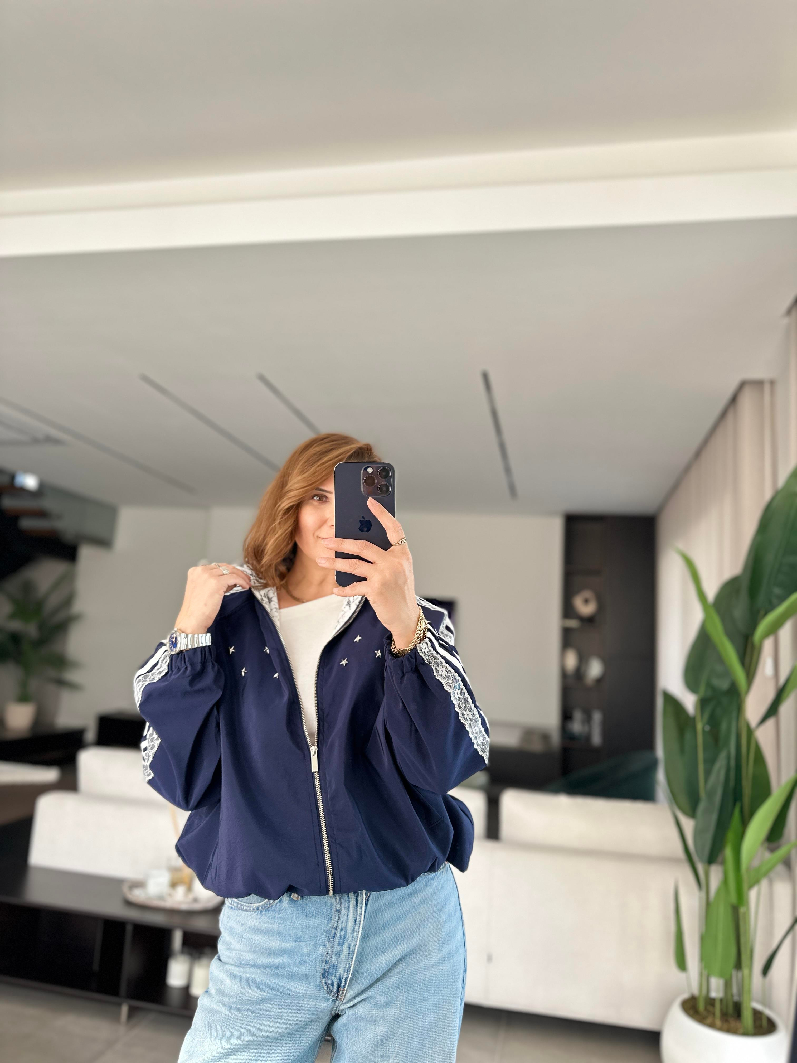 Tantel Şeritli Fermuarlı Ceket
