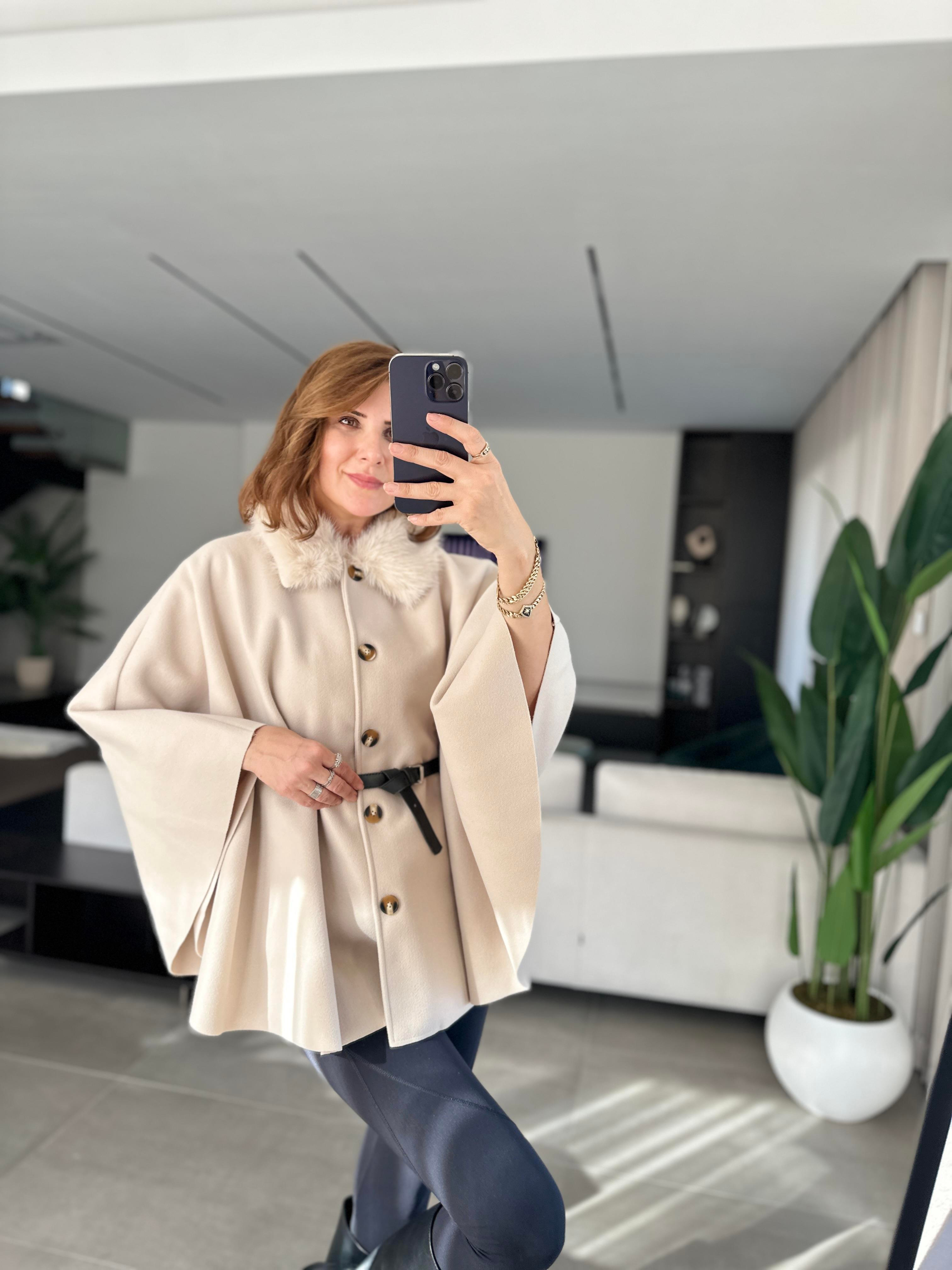 Taş Yaka Kürk Kemerli Ceket (22714t)